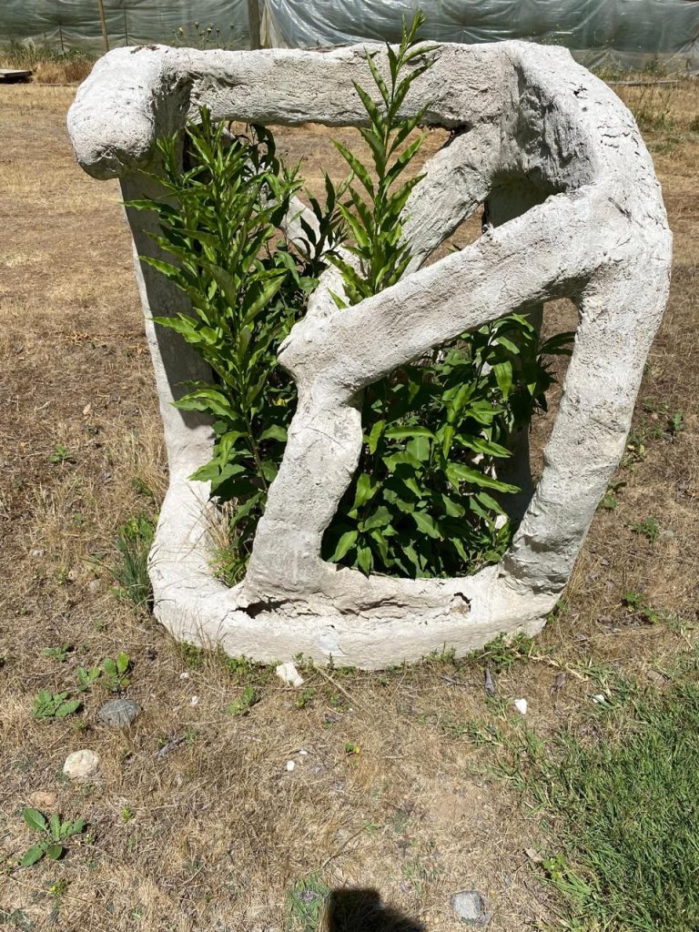 Busco (…) una escultura que venga de un lenguaje del cuerpo, que promueva una cierta gramática de relaciones entre movimientos y materiales. Llega un punto en que la escultura empieza a depender cada vez menos de una y comienza a tomar una cierta autonomía o independencia. Porque la forma aparece también al generar un recorrido que se manifiesta de una manera singular y que se vuelve a la vez reconocible. Para mí, no hay una idea preconcebida de figurar sino que es una experiencia en todo momento, porque hay cosas que se van materializando y concretando en el proceso, la forma está siempre abierta y comienza a cerrar en la medida en que comienza a tener una cierta identidad si se quiere (…). Hay algo que ocurre que no sé cuándo ocurre, pero cuando ocurre una logra reconocerlo. Como algo que se cerró. En ese sentido el cuerpo inventa el lugar en la escultura. Yo creo que eso es lo que guía. Pensar cómo el espacio es creado por el cuerpo, cómo lo visibiliza. La escultura viene a trabajar en ese espacio creado por el cuerpo. Y los materiales corresponden a esa participación del movimiento, de la proporcionalidad de escala.